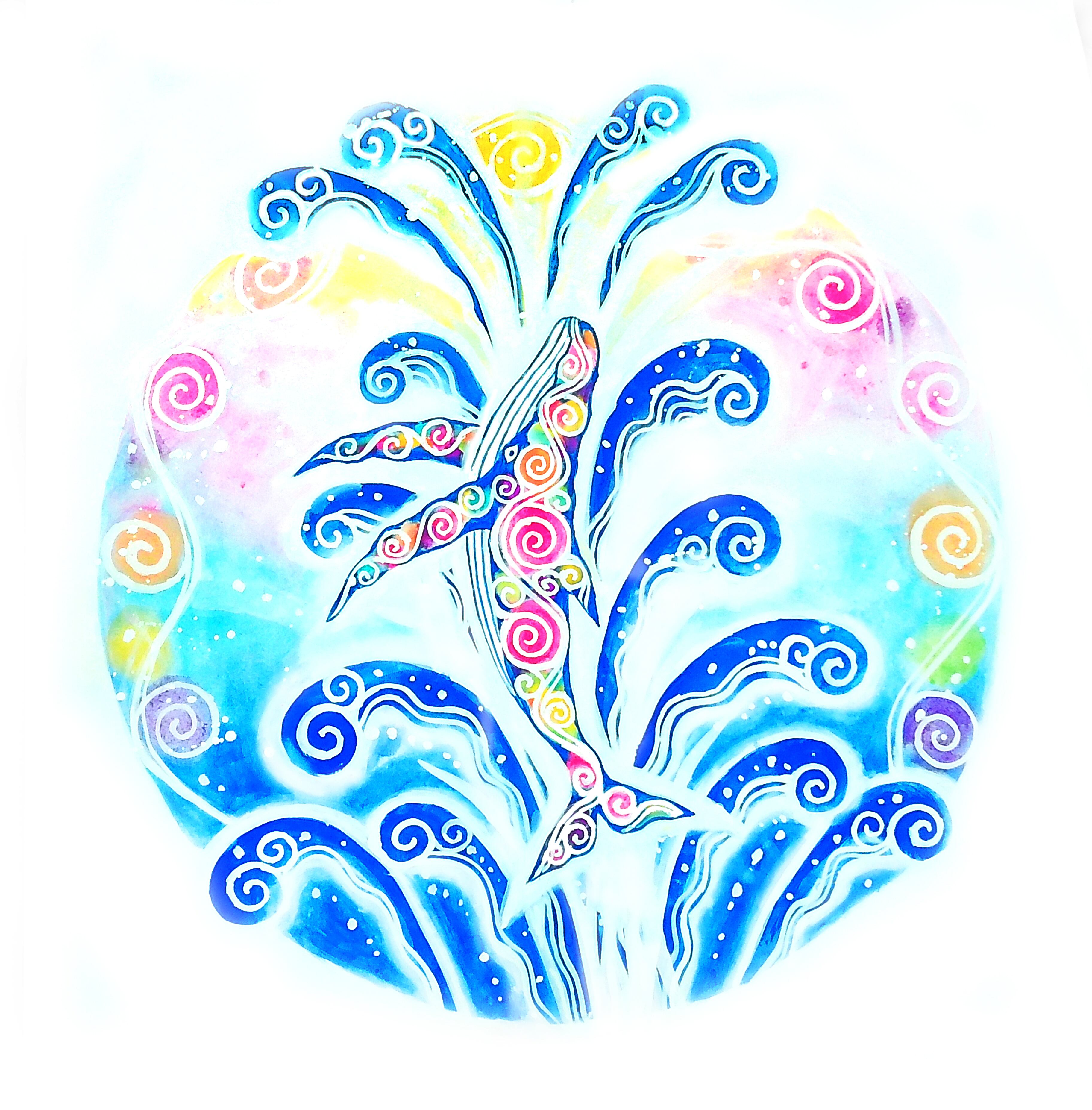 ジグレ版画 クジラの愛のスピン 2025年 (300w×300h) 白額装